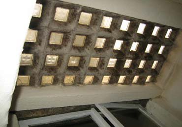 windows direct to the outside. The only natural light being via two opaque glass block light-wells in the public