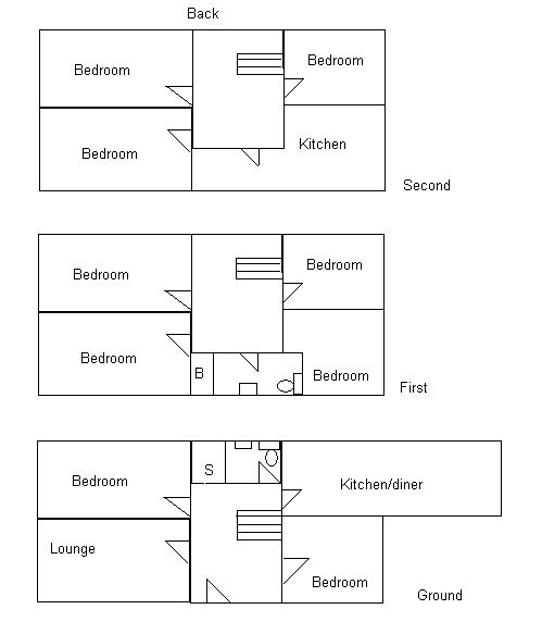 sized bath/shower rooms. The arrangement of rooms is as shown above. The shower room on the ground