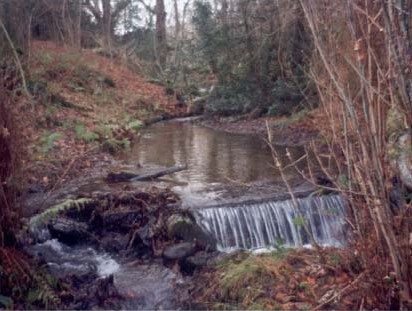 grounds, which has been dammed to produce a small shallow reservoir. From an inlet pipe near the