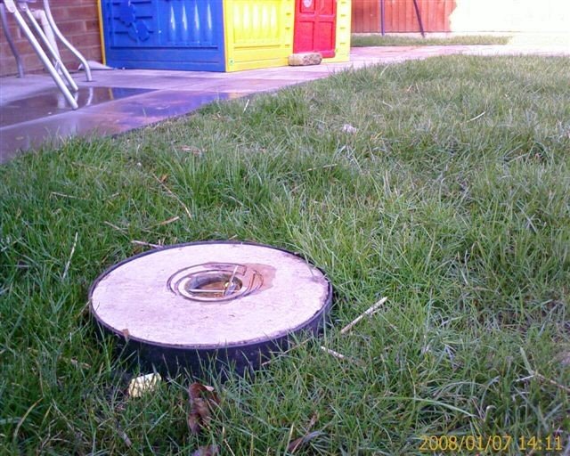 around 1850mm. In addition, there is a raised inspection chamber cover in the flat section of lawn some 600mm beyond