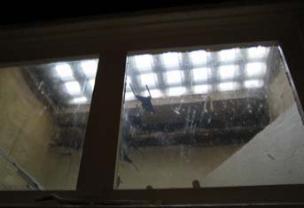 windows direct to the outside. The only natural light being via two opaque glass block light-wells in the public