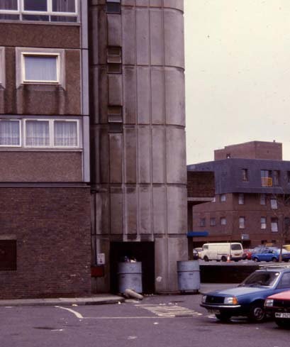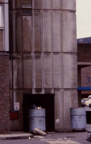refuse store on the ground floor (see photograph). The hopper on the third floor (used by this