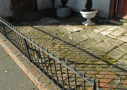 matters. These are the low spiked iron railings and gate in the front access courtyard.