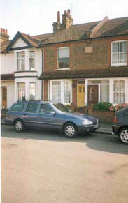 Rear garden: The rear garden beyond the patio/yard has a surface of rough cast and broken concrete.