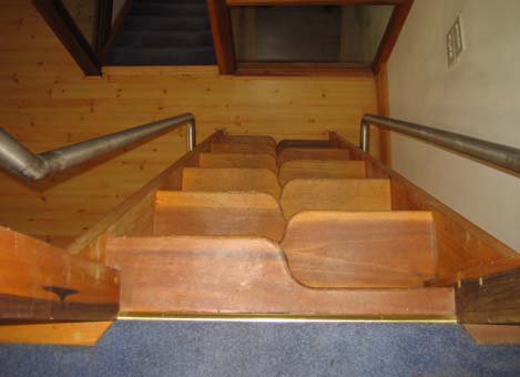 boards, glazing close to the foot of the steps and the hard wooden steps themselves all increase the