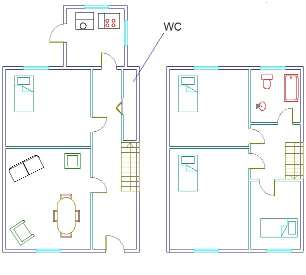 kitchen and living room on the ground floor and a bathroom on the first floor. Each bedroom, as well as