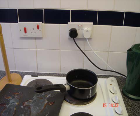 appliances burning on the hot plate