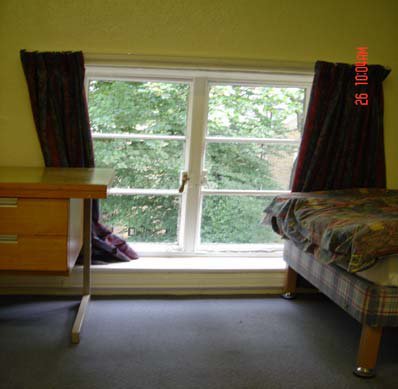 2nd floor rear right study bedroom: (Right hand photograph). There is a wooden casement window with a
