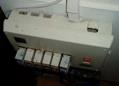 units with missing covers, the one in the kitchen also has unsealed cable entry