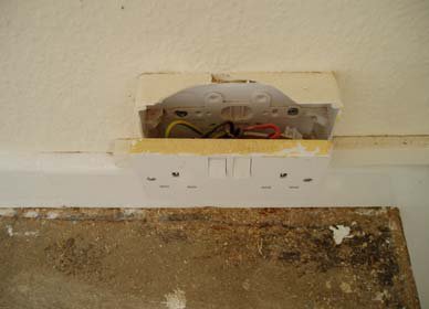 Two low-level broken sockets in the living room the exposed wiring of which is