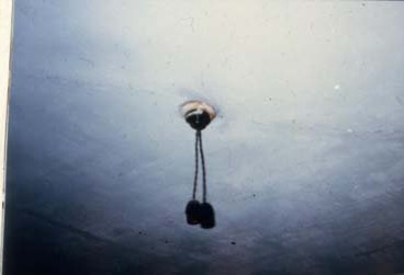 Lighting circuit: The photograph shows the two core, fabric covered wiring to a ceiling light, this being typical