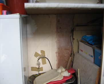 worktops. Live wiring could also be readily dislodged and exposed particularly if a young